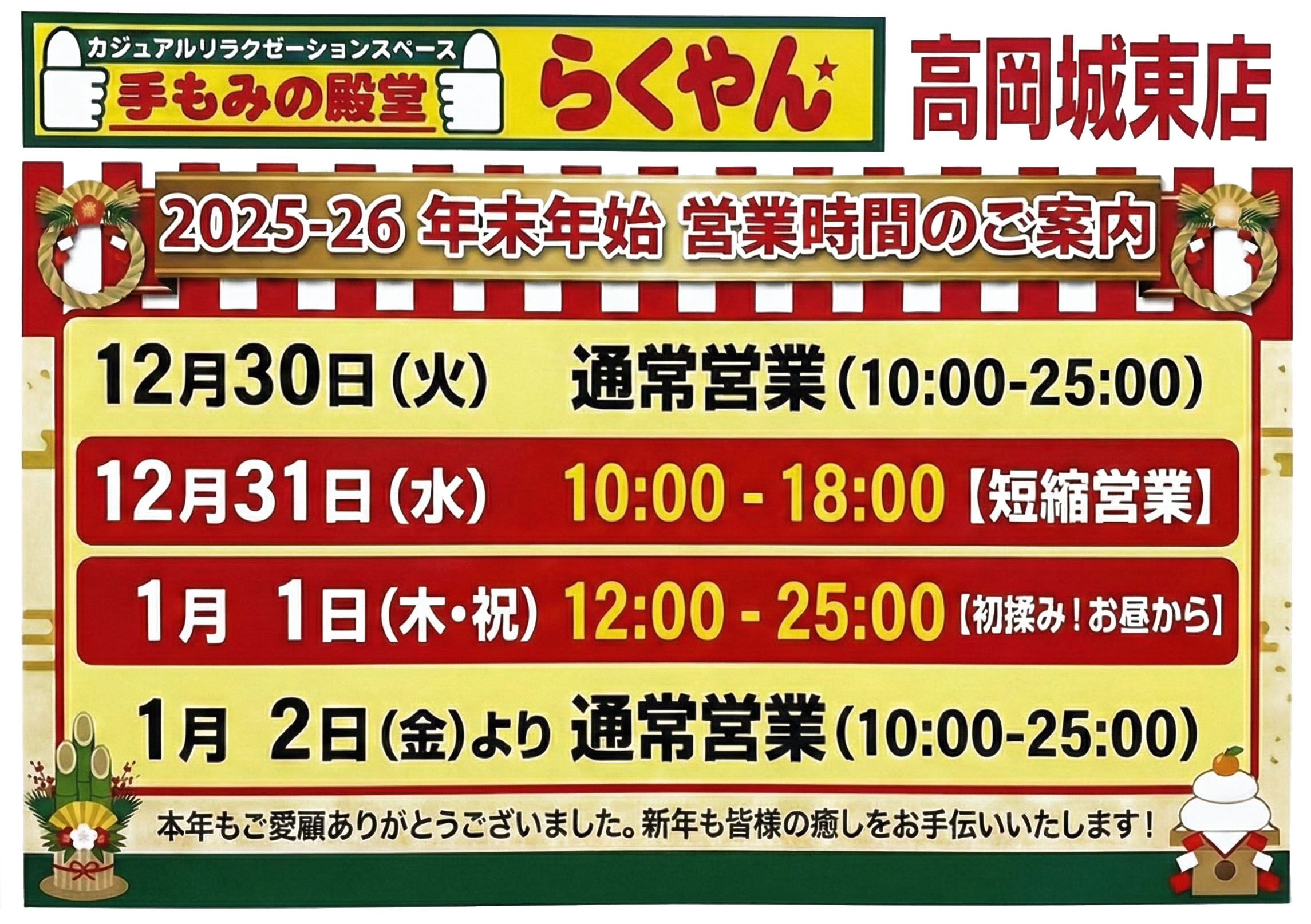 | 出勤時間 | 20:30~25:00 |